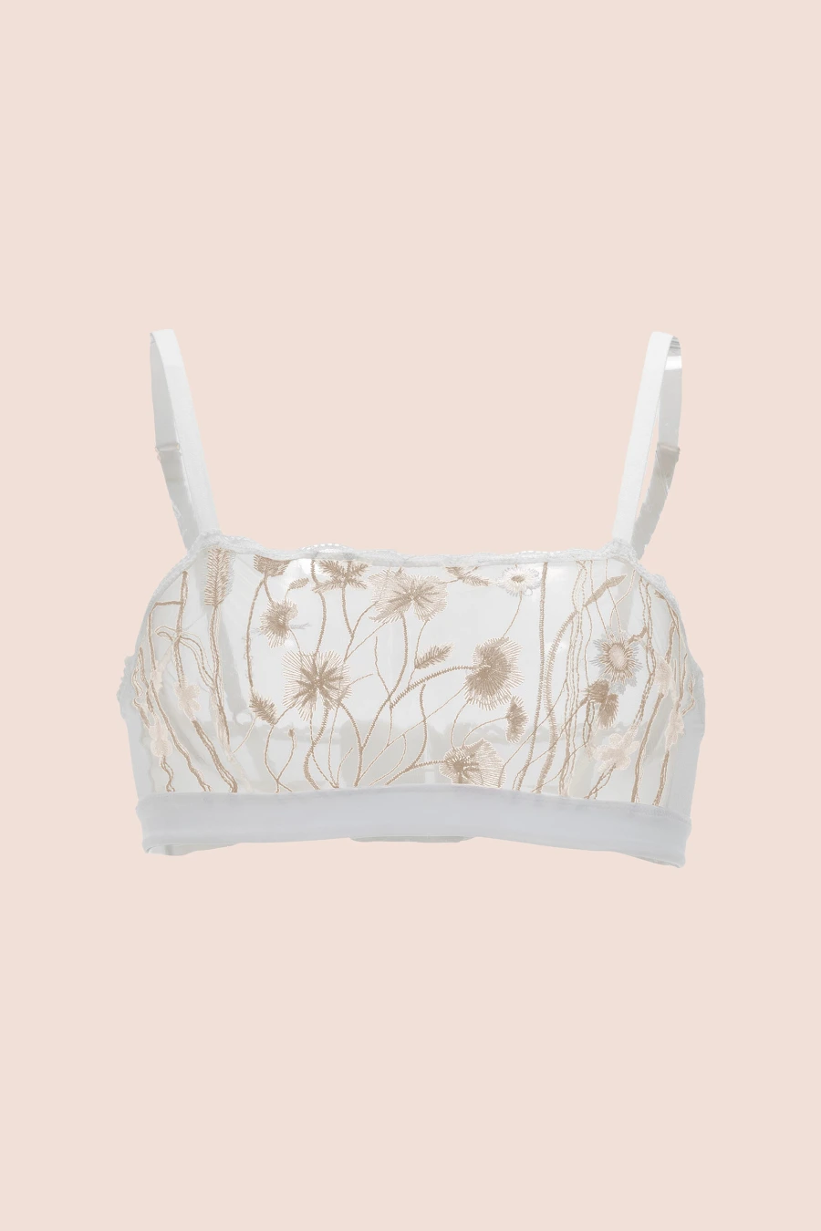 Bralette con bordado sobre delicado tul europeo transparente. Las puntillas en sus bordes te harán lucir muy femenina.