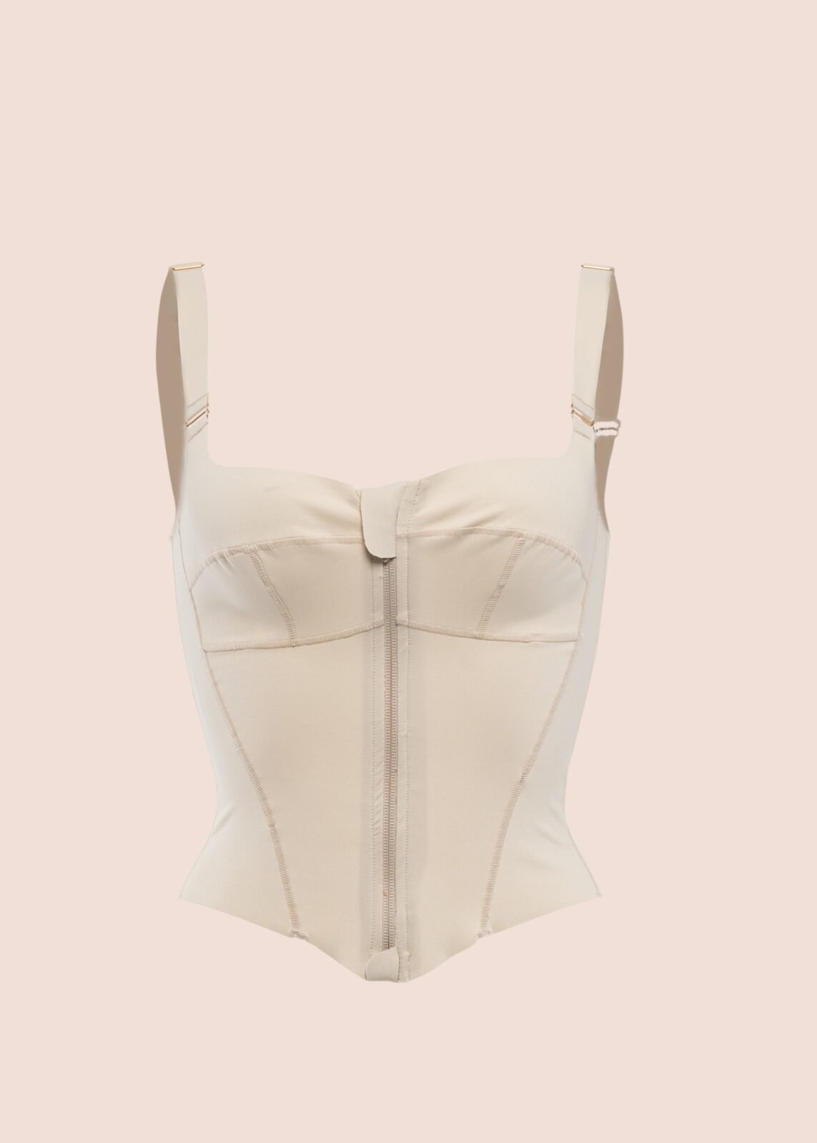 Corset sin elásticos ni costuras con un cierre delantero, de control medio que brinda gran confort y estiliza tu figura dándote el soporte necesario.