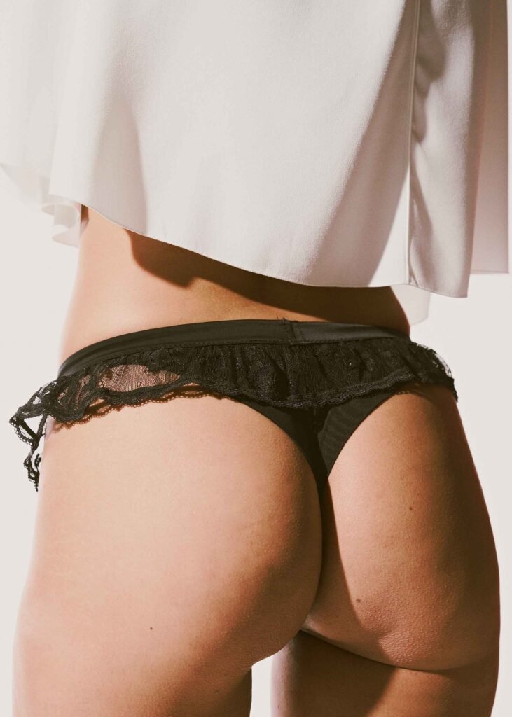 Elaborado en encaje suave que no irrita tu piel, sus cargaderas son lazos aterciopelados suaves al tacto.