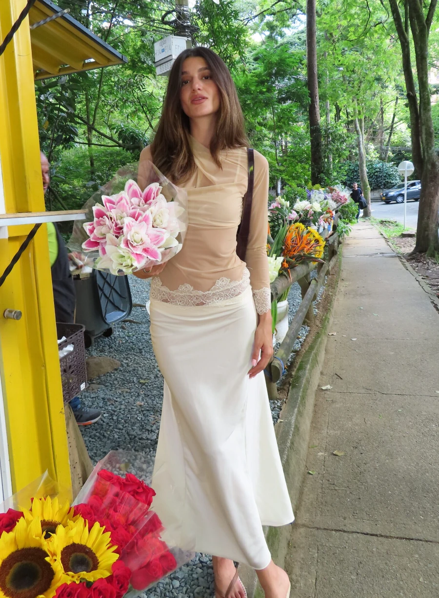 Descubre la falda perla champagne de seda que transforma tu look y tu actitud.