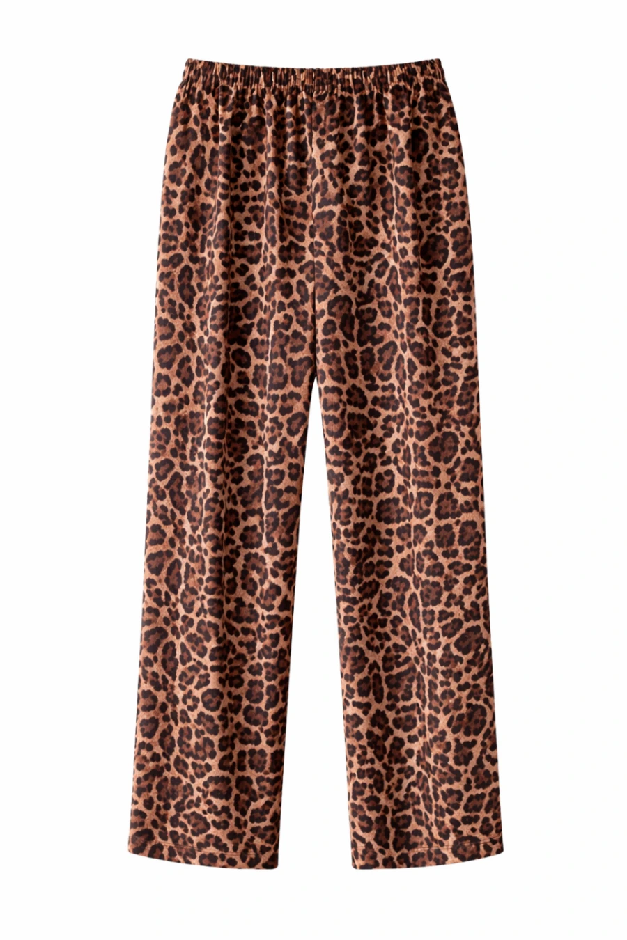 El Pantalón Felina de Medianoche seduce con su caída fluida y ligera, confeccionado en una tela de tacto suave con sutiles toques de seda y un animal print leopardo sofisticado, pensado para mujeres reales que dominan su esencia con seguridad y estilo.