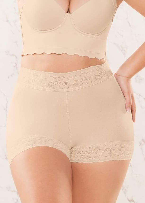 Encaje siliconado en cintura y pierna que fija la prenda y mantiene su posición todo el día.