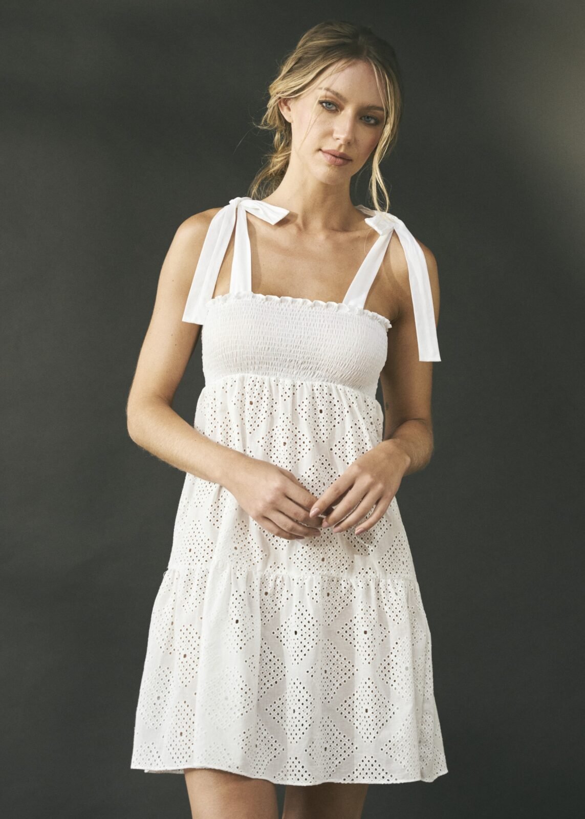 Pijama tipo babydoll elaborada en ojalillo, 100% algodón.